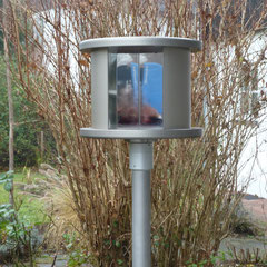 Mein Ziel bei der Ideenentwicklung und dem Entwurf der Spiegel-Rotunde war es eine Installation zu konzipieren, die sowohl Bewegungsspiel als auch optische und akustische Erlebnisse im Stadtraum ermöglicht. Die Spiegel-Rotunde besteht aus einem drehbaren Körper mit einem farbigen Zylinderkopf, der durch die Drehung um seine Mittelachse (wie bei den Stadtmusikanten) einen Glockenton erzeugt. Der Drehkörper besteht aus konkav und konvex gebogenen Spiegeln. Durch die Drehung entstehen Reflexionen, Verzerrungen und eine eigene kleine Spiegelwelt. mit interessanten optischen Entdeckungen und Wahrnehmungen. Die Spiegel-Rotunde setzt in Fussgängerzonen, auf öffentlichen Plätzen und vor öffentlichen Gebäuden einen besonderen gestalterischen und akustischen Akzent. Das Bespielen und Erkunden ist für Kinder und Erwachsene interessant. Für kleine Kinder bietet die Spiegelrotunde auch die Möglichkeit, sich direkt an den Spiegelkörper zu stellen. So können sie ihre unterschiedlichen Spiegelbilder beobachten, begleitet von einem Glockenton als Klangerlebnis. Die Spiegel-Rotunde lädt auch zur Bewegung ein, denn um den Glockenton zu aktivieren, muss der Drehkörper mit Hilfe des umlaufenden Handlaufs in Bewegung gesetzt werden.