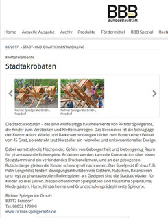 Die entworfenen Spielgeräte sind über Fa. Richter Spielgeräte in D-83112 Frasdorf zu bestellen.
